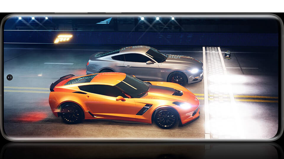 Màn hình của Samsung Galaxy S20+ không chỉ đẹp mà còn có tần số quét 120Hz, gấp đôi chuẩn màn hình thông thường, cho độ phản hồi chính xác tuyệt vời và mượt mà trong từng thao tác. Màn hình 120Hz nâng cao trải nghiệm vuốt, chạm, đặc biệt là khi bạn chơi những tựa game hành động bắn súng đòi hỏi thao tác nhanh. Hình ảnh cũng được thể hiện mượt hơn và khác biệt rõ rệt so với những màn hình điện thoại mà bạn từng biết trước đây.